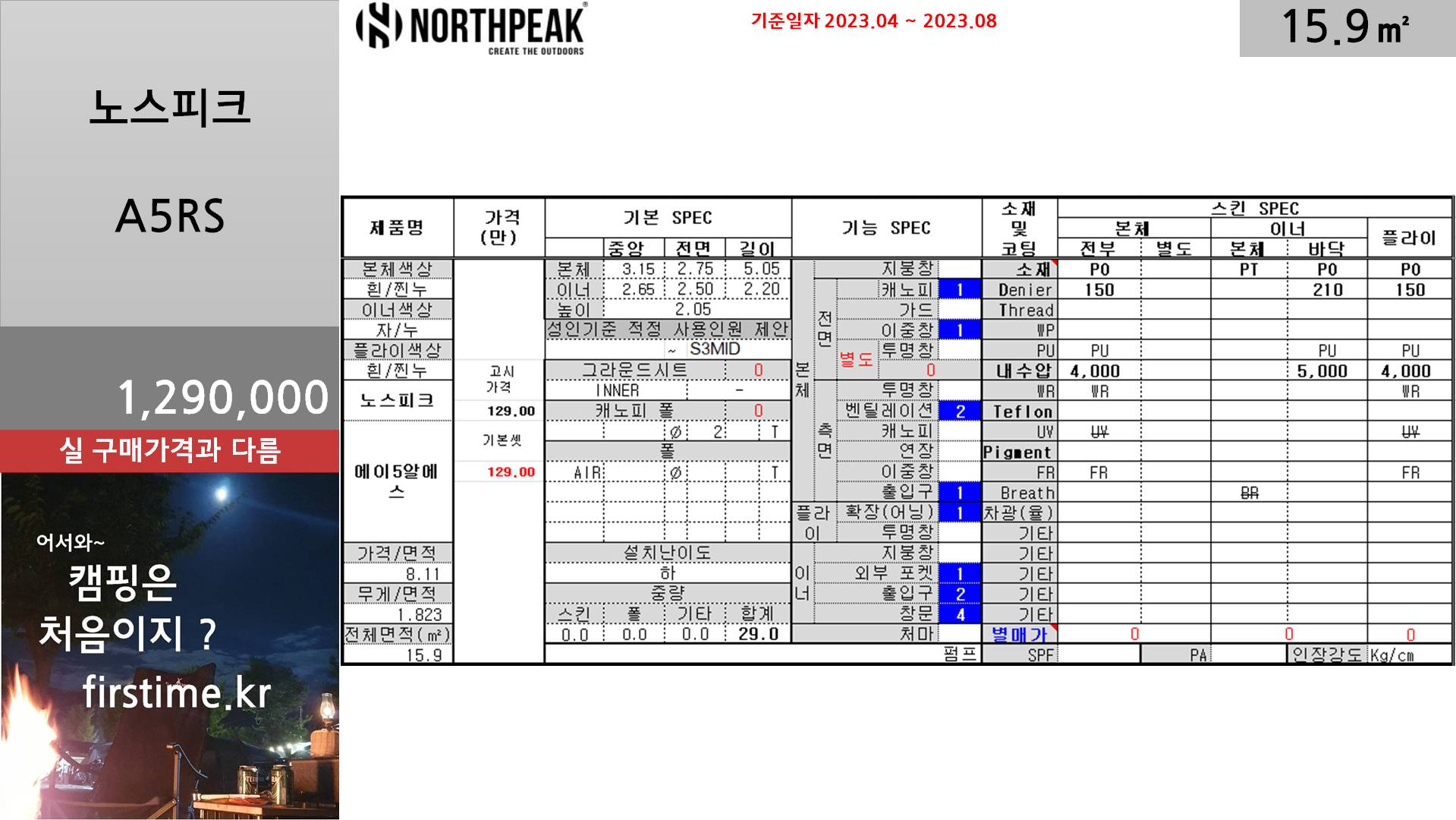 [기초정보] A5RS(에이5알에스)거실형 텐트 기초 스펙 및 평면 2023. 12. 6. 14:05300x250
