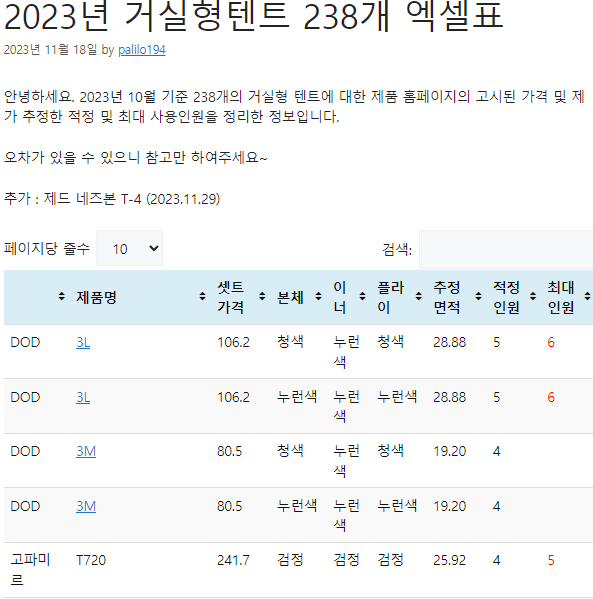텐트 제조 및 판매사 https://palilo-camp.tistory.com/153