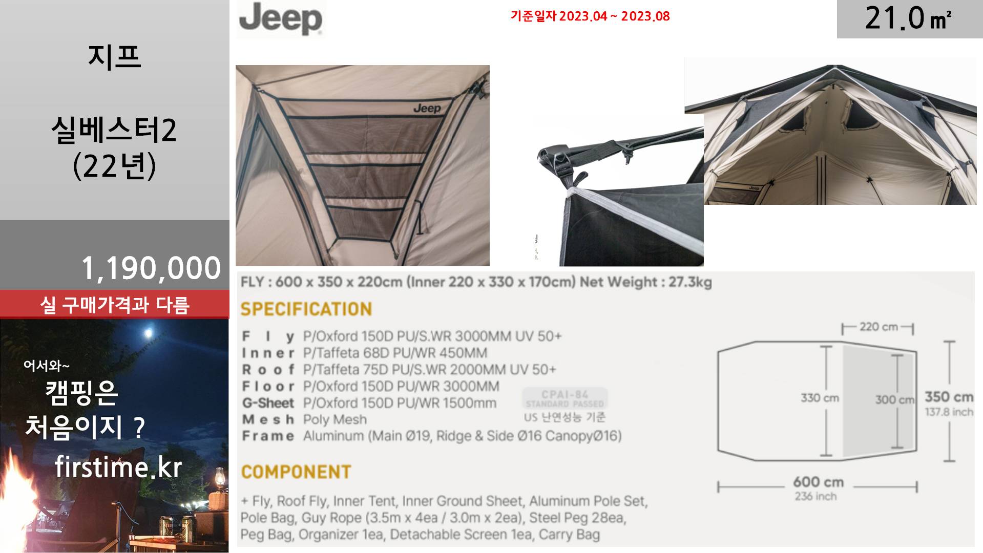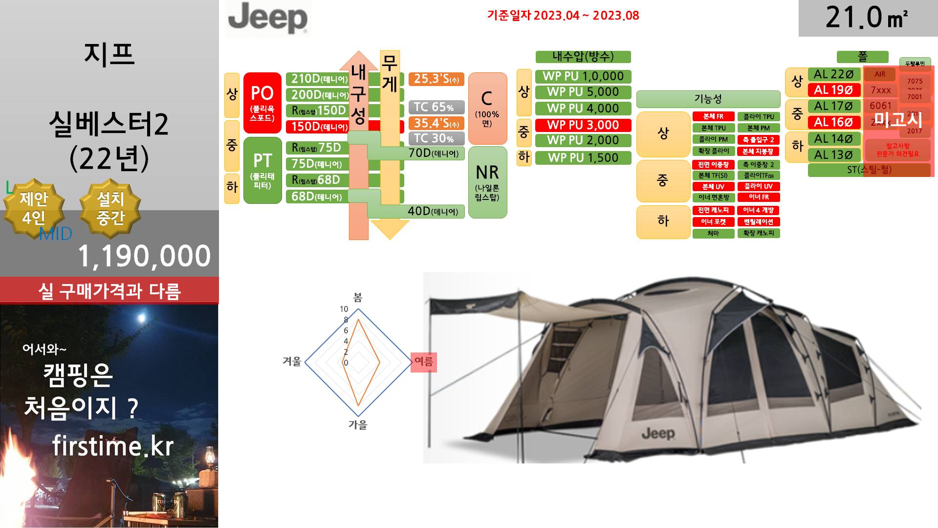 [기초정보] 지프 실베스터2(22)거실형 텐트 기초 스펙 및 평면 2023. 12. 9. 19:20300x250
