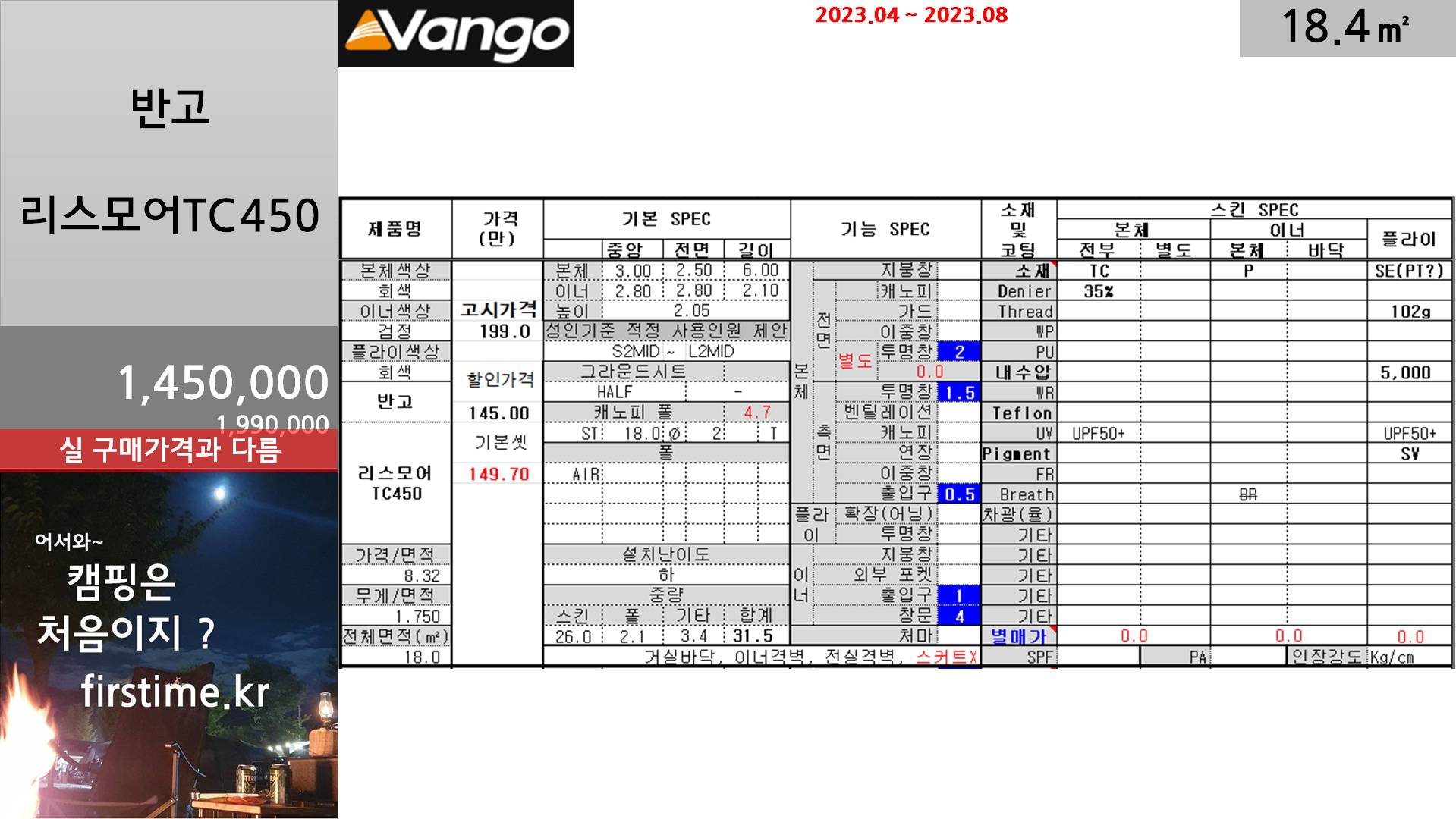 [기초정보] 반고 리스모어TC450거실형 텐트 기초 스펙 및 평면 2023. 12. 10. 09:00300x250