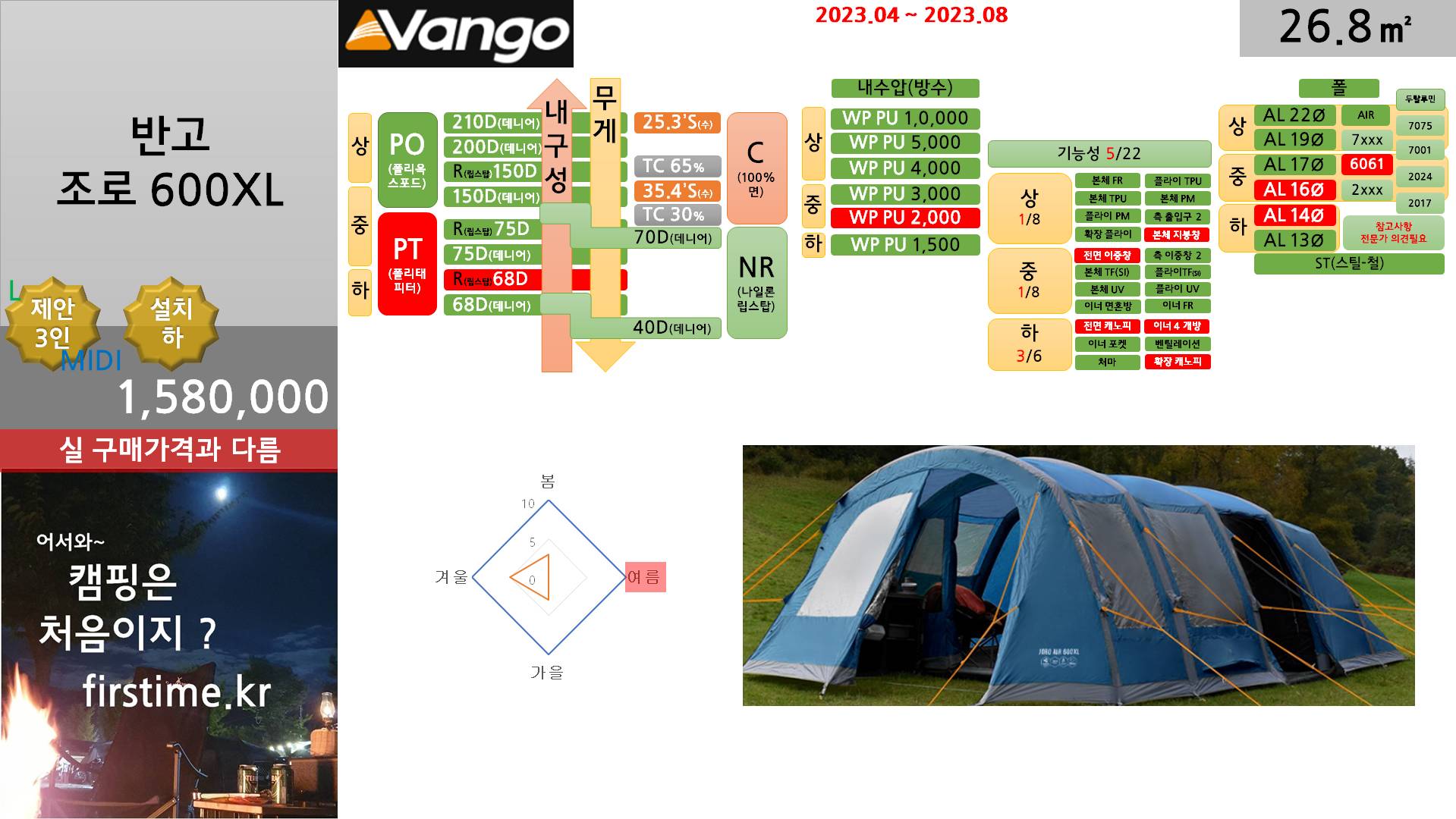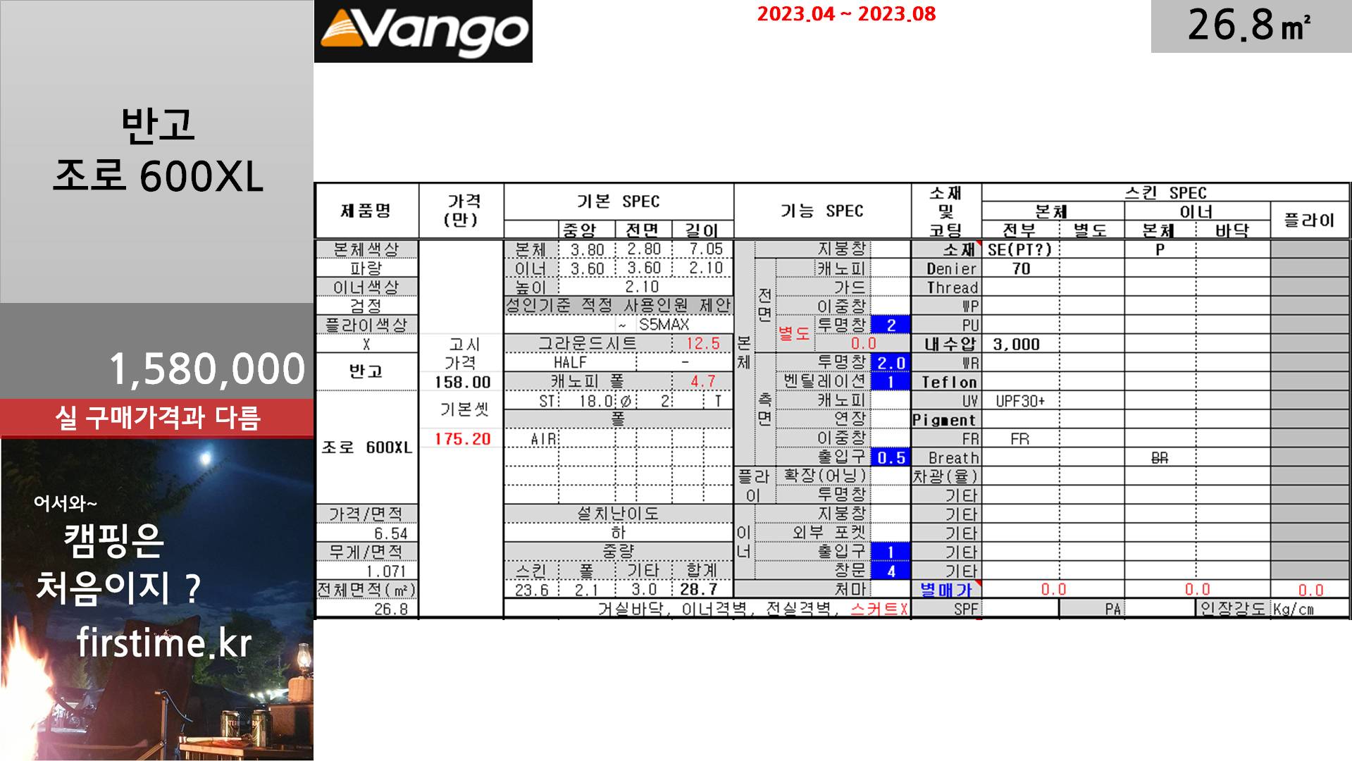 [기초정보] 반고 조로 600XL거실형 텐트 기초 스펙 및 평면 2023. 12. 12. 13:32300x250