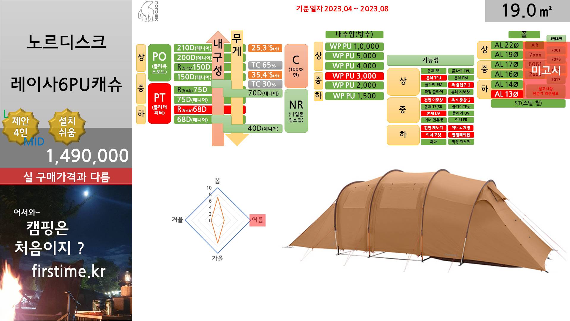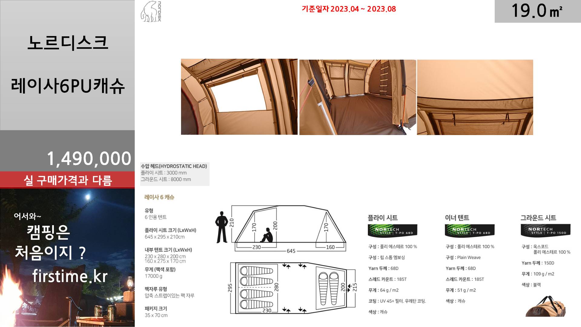 [기초정보] 노르디스크 레이사6 PU캐슈거실형 텐트 기초 스펙 및 평면 2023. 12. 13. 13:57300x250