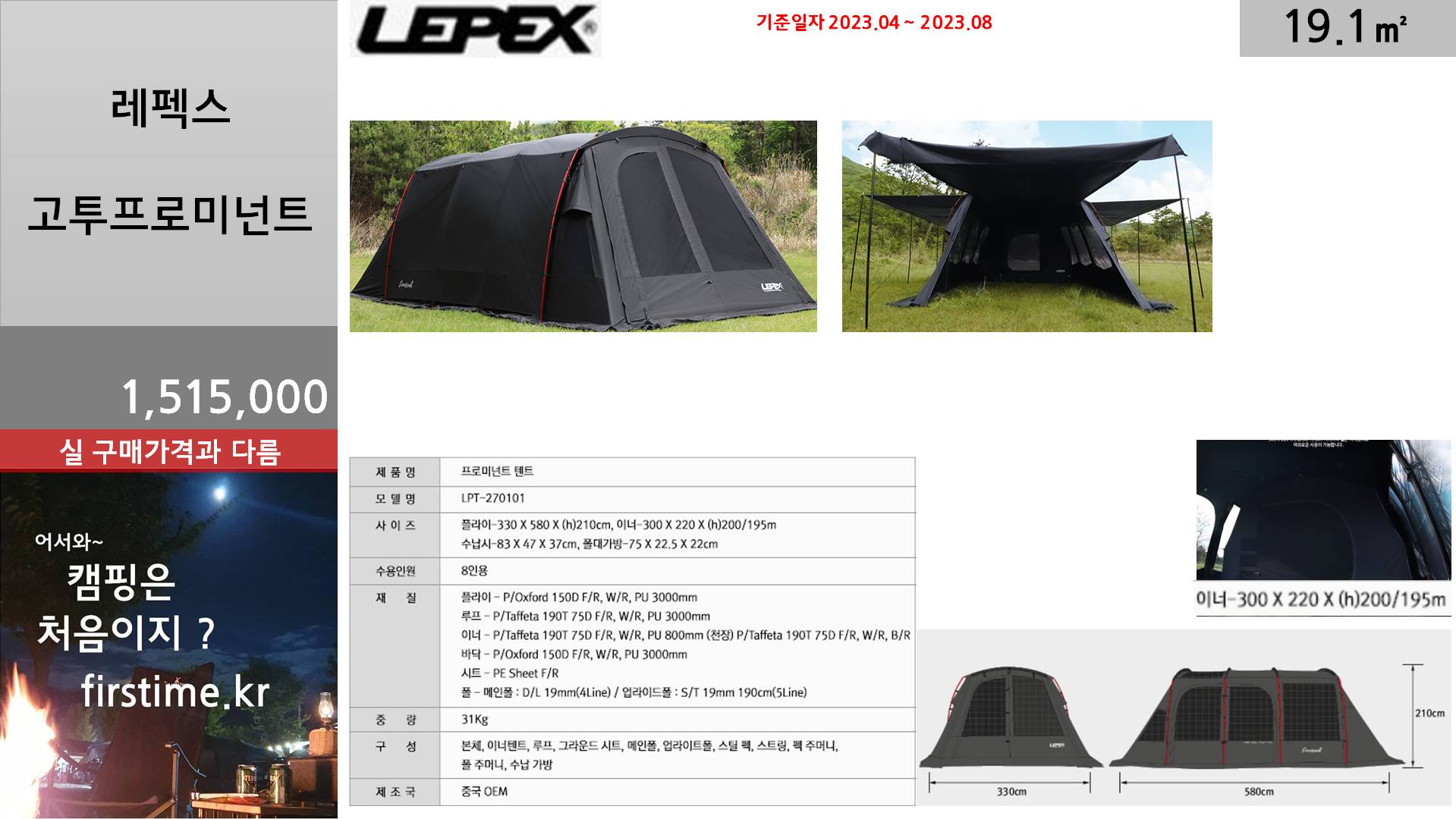 [기초정보] 레펙스 고투프로미넌트거실형 텐트 기초 스펙 및 평면 2023. 12. 13. 16:07300x250