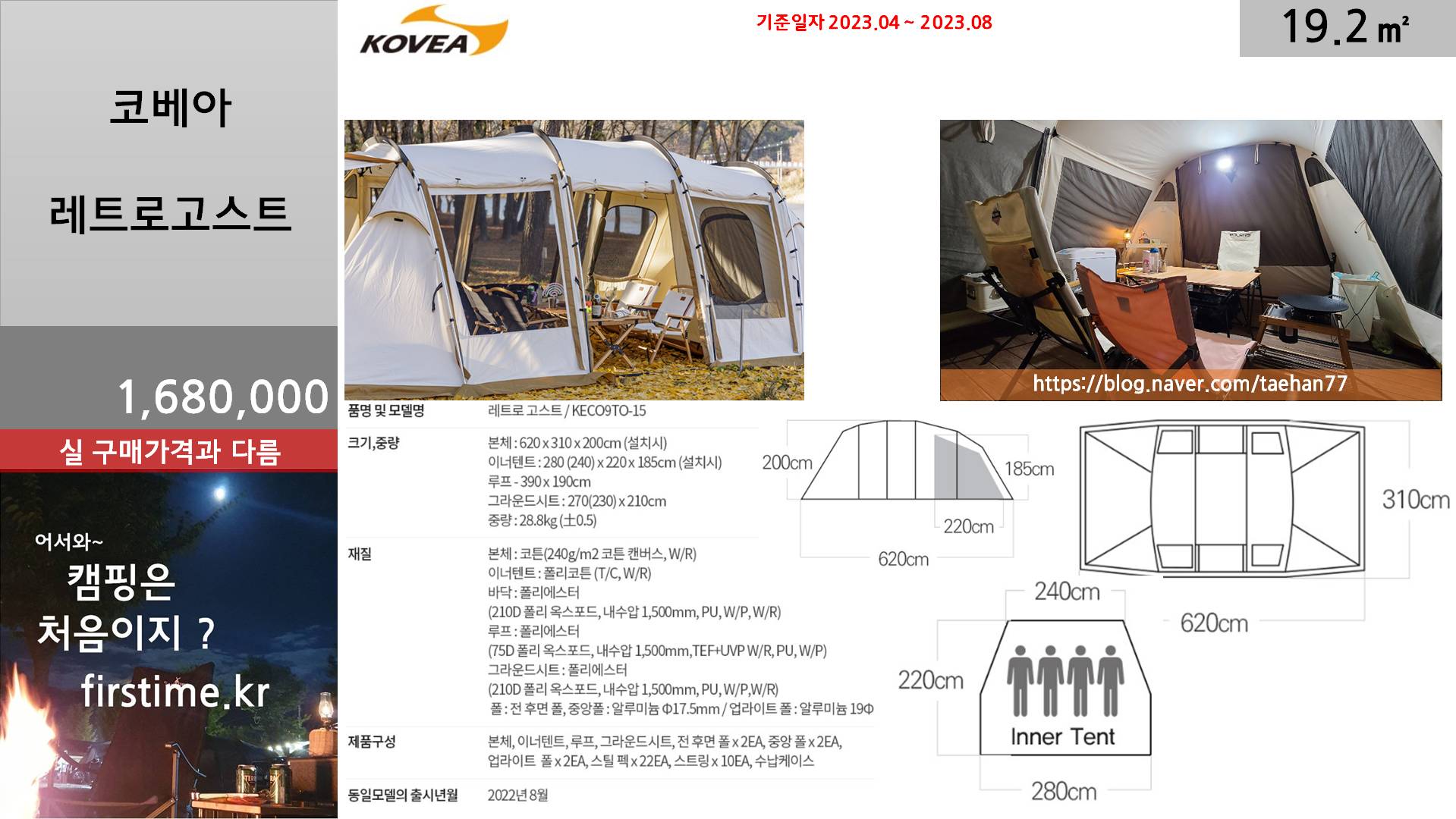 [기초정보] 코베아 레트로고스트거실형 텐트 기초 스펙 및 평면 2023. 12. 13. 16:17300x250