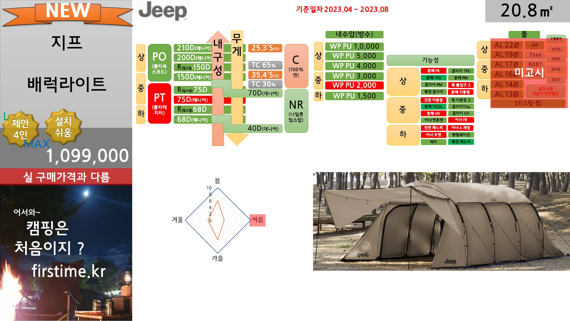 [기초정보] 지프 배럭라이트거실형 텐트 기초 스펙 및 평면 2023. 12. 15. 11:40300x250