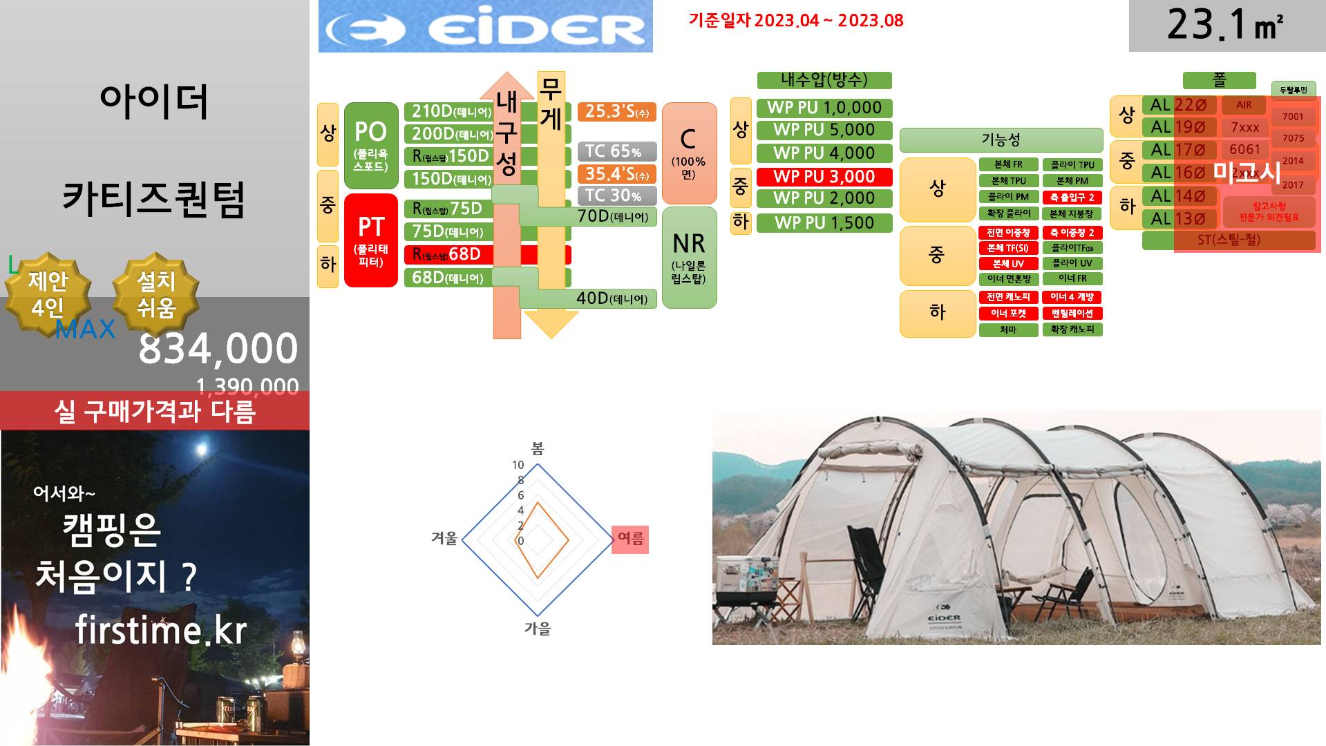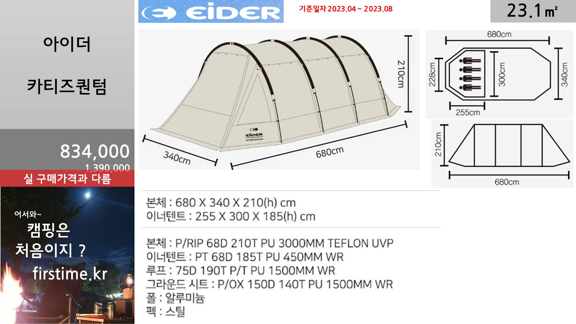 [기초정보] 아이더 카티즈퀀텀거실형 텐트 기초 스펙 및 평면 2024. 1. 5. 09:28300x250