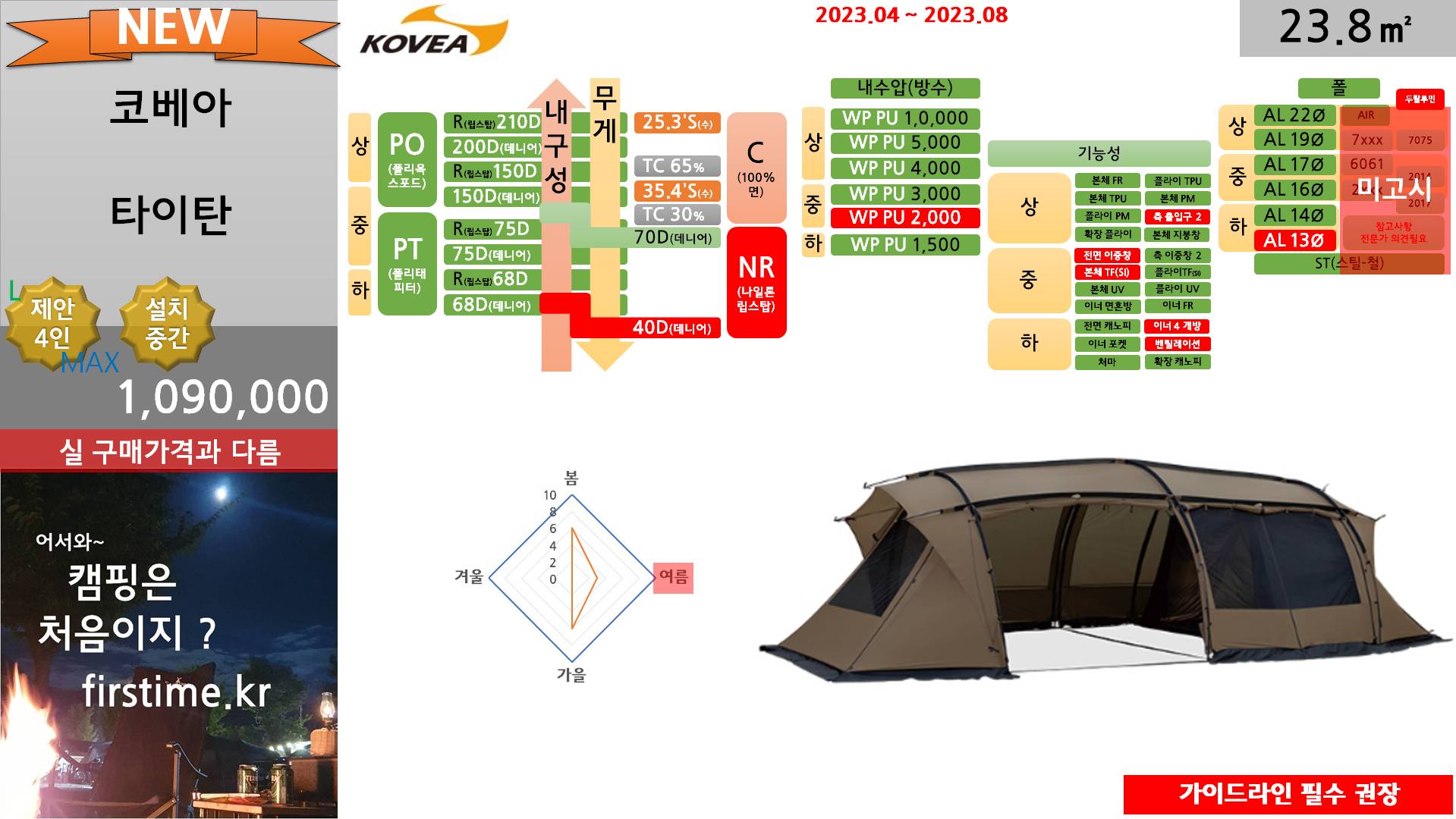 [기초정보] 코베아 타이탄거실형 텐트 기초 스펙 및 평면 2024. 1. 5. 10:02300x250