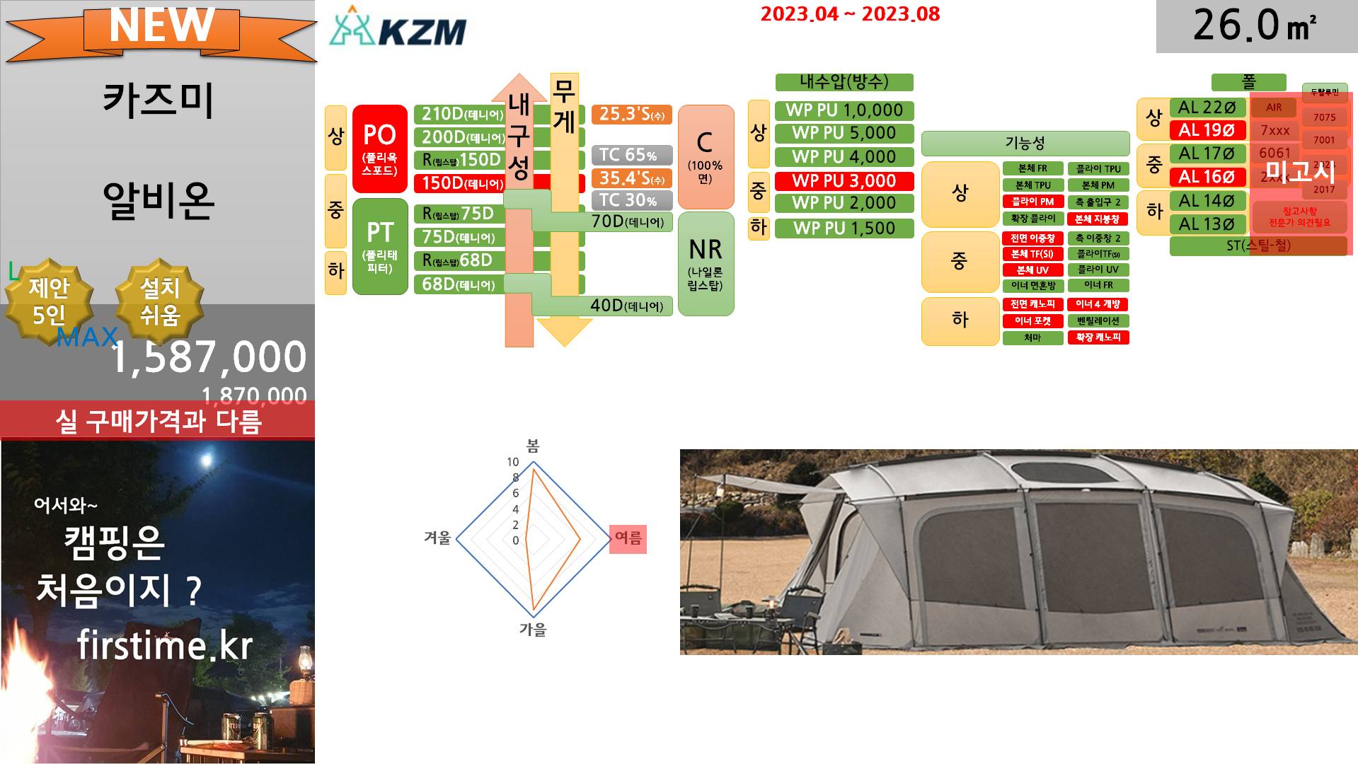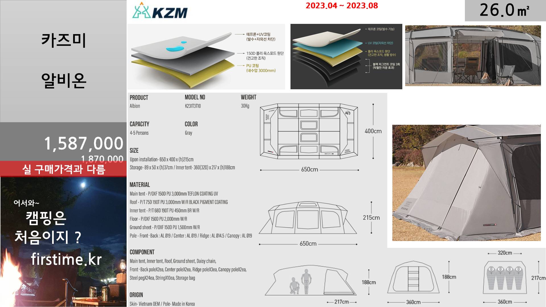 [기초정보] 카즈미 알비온거실형 텐트 기초 스펙 및 평면 2024. 1. 5. 10:14300x250