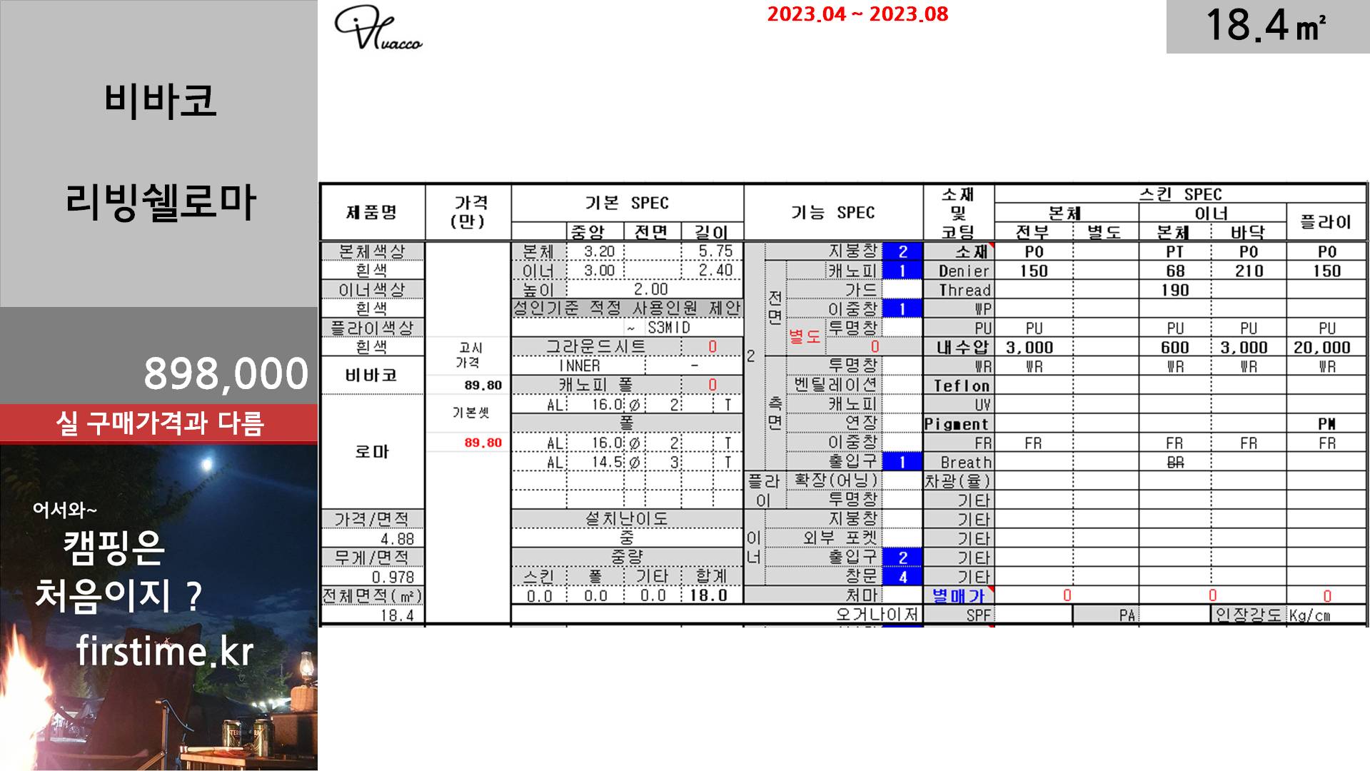 [기초정보] 비바코 리빙쉘로마거실형 텐트 기초 스펙 및 평면 2024. 1. 8. 11:10300x250