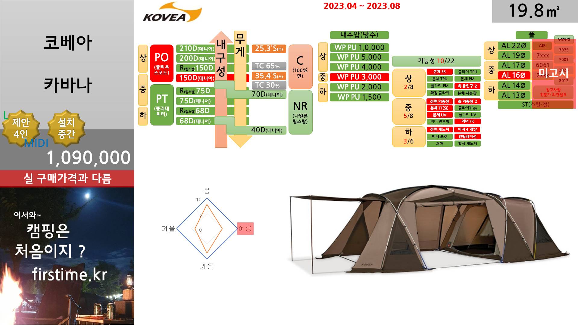 [기초정보] 코베아 카바나거실형 텐트 기초 스펙 및 평면 2024. 1. 9. 10:18300x250