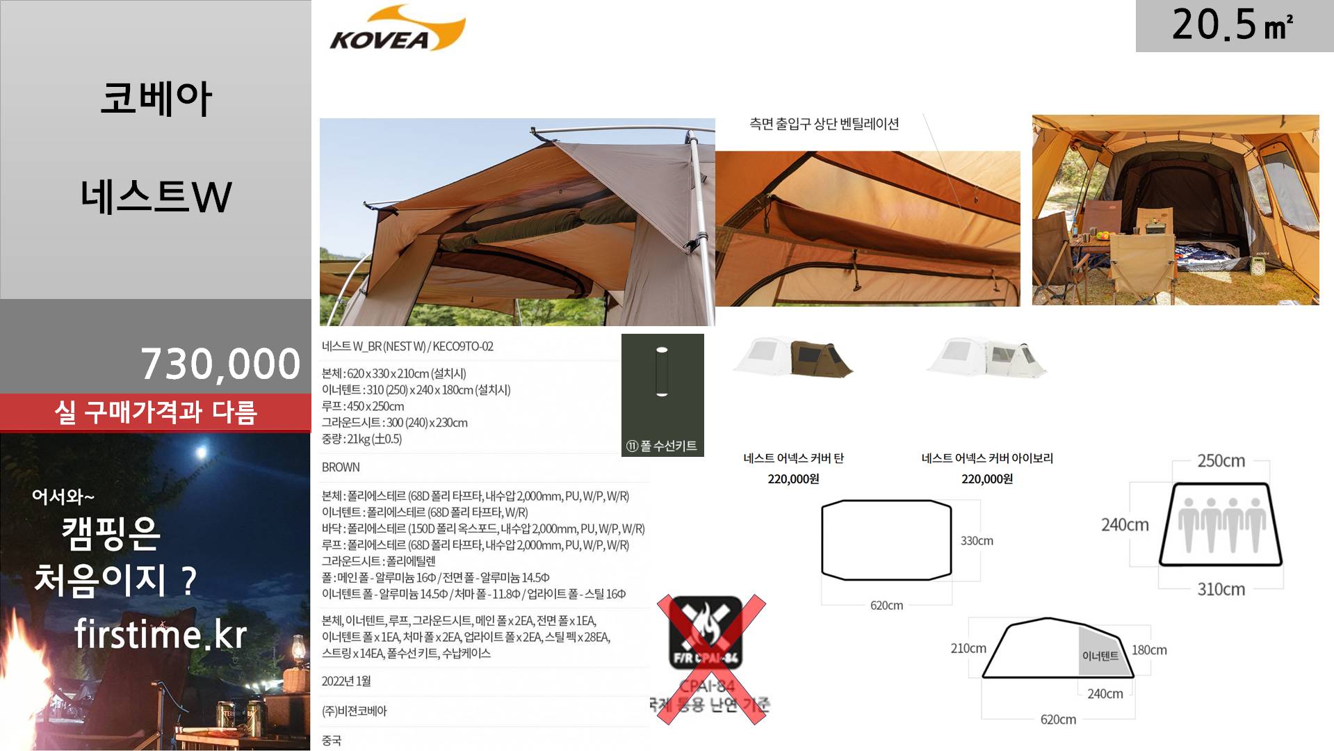[기초정보] 코베아 네스트 W거실형 텐트 기초 스펙 및 평면 2024. 1. 9. 10:32300x250
