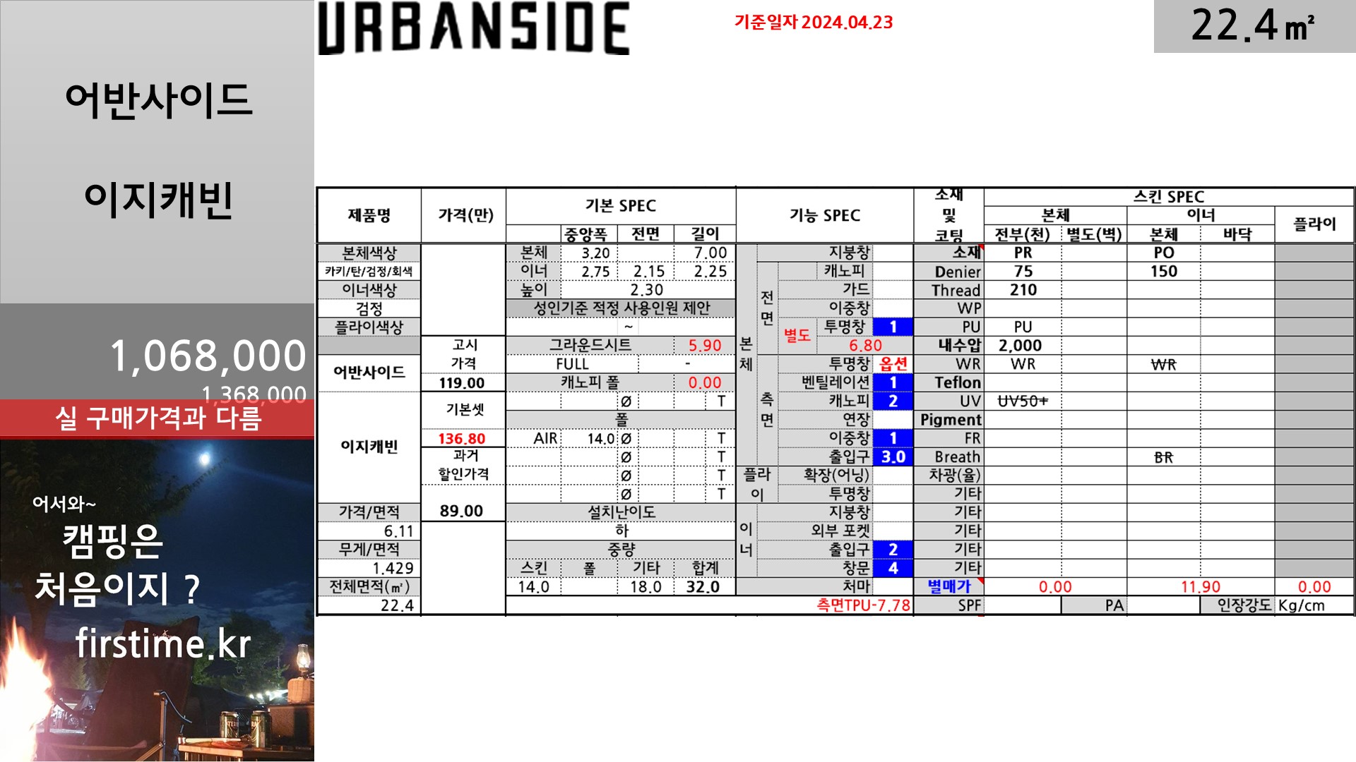 [기초정보] 어반사이드 이지캐빈거실형 텐트 기초 스펙 및 평면 2024. 4. 25. 11:19300x250